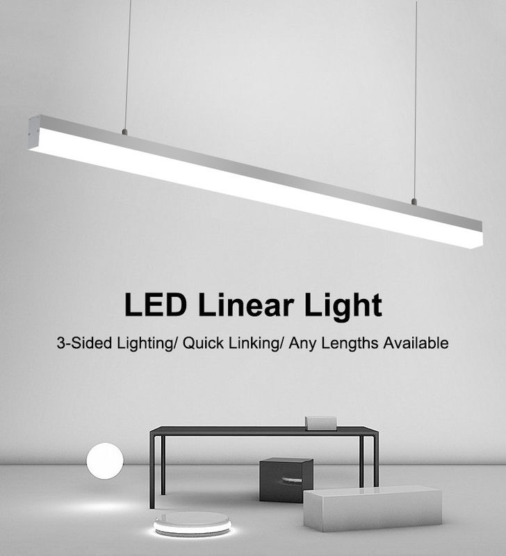 | LED Linear Light | Application: Indoor Lighting CRI: Ra>80 Input Voltage: AC100-240V Material: Aluminum IP Rating: IP20 Beam Angle: 120° Lifespan: 50,000 Hours Luminous Flux: 2000lm Color Temperature: 3000K/4000K/6000K Dimmable LED Lamp, Industrial Linear Lighting, 3 Sides Linear Light |